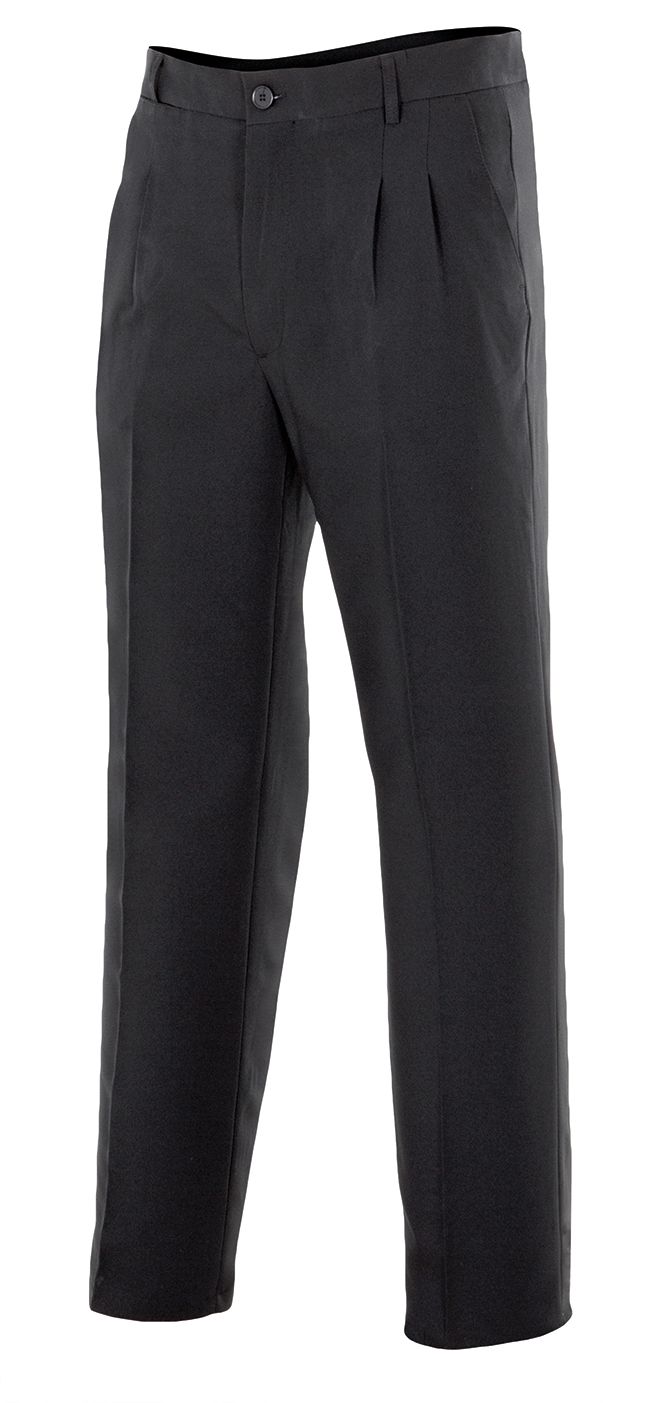 Cierre central con cremallera y botónDoble costura interior de seguridadCinturilla reforzada con entretela y pretinaDobles pinzas delanteras y pinzas traserasTejido elástico y antiarrugasCuatro bolsillos:2 bolsillos franceses1 bolsillo relojero1 bolsillo trasero de vivo, con botónPLANA. 100% POLIÉSTER